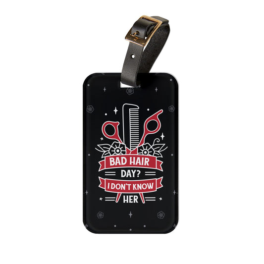 Bad Hair Day Dont Know Her Luggage Tag Barber and Hairdresser Job Quotes Perfect Travel Accessory for Stylists on the Go Barber Accessory