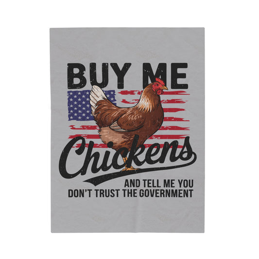 Buy Me Chickens Velveteen Plush Throw Blanket | Funny Chicken Conspiracy Cozy Blanket Homesteader Jokes Chicken Lover Gift Chicken Decor