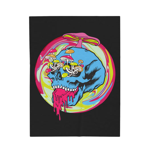 Trippy Skull Mushroom Velveteen Plush Throw Blanket | Psychedelic Vibrant Shroom Art Melting Skull Blanket Festival Rave Lovers Unique Gift