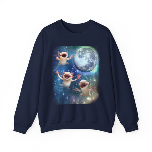 Axolotl Howling at Moon Sweatshirt | Vintage Aquatic Salamander Pullover Sweater | Funny Axolotl Apparel Gift for Animal Lovers Semi Aquatic