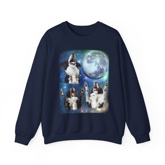 Border Collie Howling at Moon Sweatshirt | Vintage Dog Lover Pullover Sweater | Funny Border Collie Apparel Gift for Dog Owners