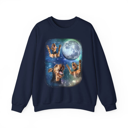 Airedale Terrier Howling at Moon Sweater | Vintage Dog Lover Pullover | Funny Airedale Apparel Sweatshirt Funny Dog Sweater Airedale Gift