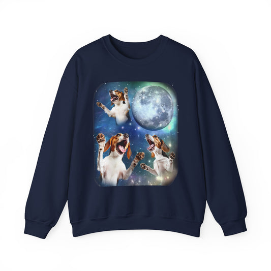 Beagle Howling at Moon Sweatshirt | Vintage Dog Lover Pullover Sweater | Funny Beagle Apparel Gift for Dog Enthusiasts and Pet Lovers