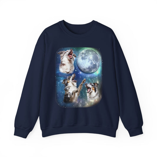 Australian Shepherd Howling at Moon Sweatshirt | Vintage Dog Lover Pullover Sweater Funny Aussie Dog Apparel Gift Pet Lovers Aussie Shepherd