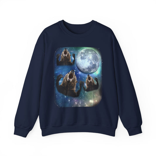 Brown Bear Howling at Moon Sweatshirt | Vintage Bear Lover Pullover Sweater | Funny Brown Bear Apparel Gift Wildlife Enthusiasts Cute Bear