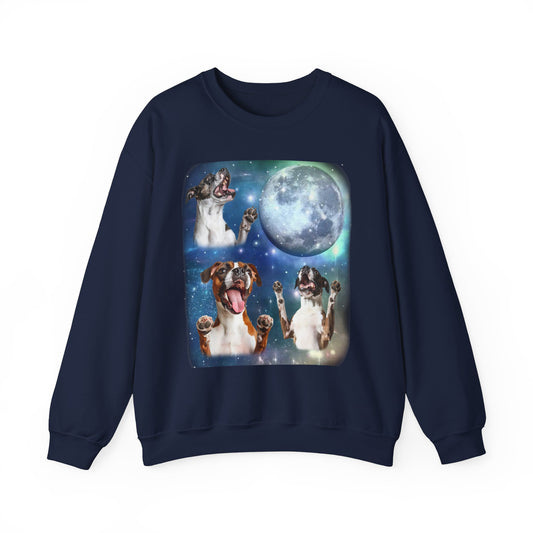 Boxer Howling at Moon Sweatshirt | Vintage Dog Lover Pullover Sweater | Funny Boxer Apparel Gift for Dog Lovers and Pet Enthusiasts
