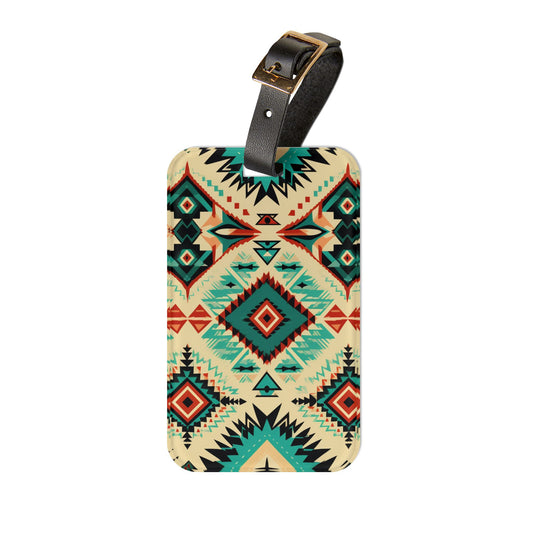 Turquoise Blue Aztec Western Luggage Tag | Bold Baggage ID | Western Cowboy Travel Accessory | Native American Inspired Design Southwestern