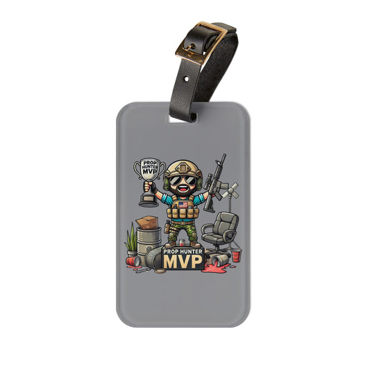 Prop Hunter MVP Luggage Tag | Funny Tactical Gamer Baggage ID | Trophy & Props Victory Design | Bearded Cartoon for Unique Prop Hunt Theme