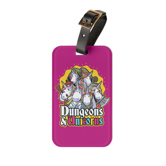 Dungeons and Unicorns Luggage Tag | Funny Unicorn Lover Baggage ID | Nerdy Parody Travel Accessory | Fantasy Roleplaying Gift Magical Fans