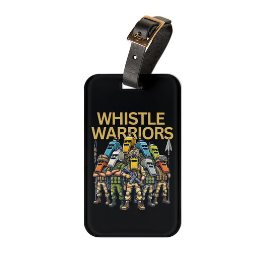 Whistle Warriors Luggage Tag | Tactical Cartoon Whistle Soldiers Baggage ID Funny Military Prop Hunt Design Unique Gamer Gift Bold Team Art