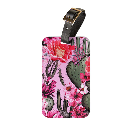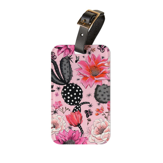 Chic Cactus and Flower Luggage Tag Artistic Floral Desert Design Travel Accessory Stylish Boho Aesthetic Baggage ID Great Gift Flower Lovers