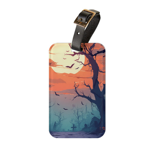 Scenic Sunset Graveyard Luggage Tag | Halloween Inspired Baggage ID | Spooky Gravestones | Goth Eerie Scenic Art | Dead Forest Witchy Vibe