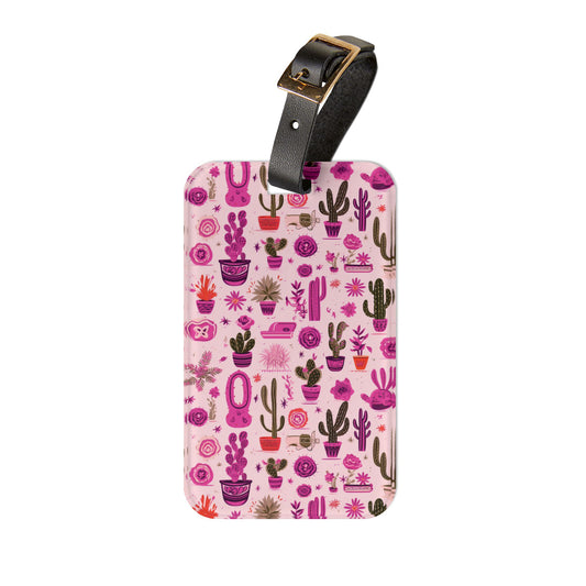 Stylish Cactus with Blooming Pink Flowers Luggage Tag Potted Cactus Desert Travel Accessory Girly Boho Aesthetic Baggage ID Cactus Lovers