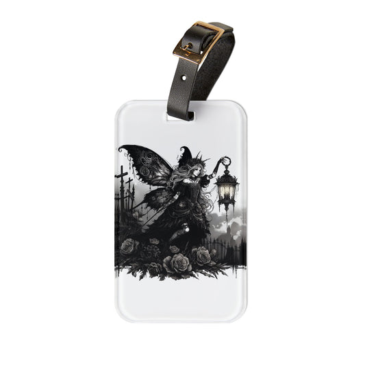 Gothic Fairy Holding Lantern Luggage Tag | Gothic Style Art Dark Aesthetic | Baggage ID for Black Roses Fairy Goth Emo | Travel Accessory