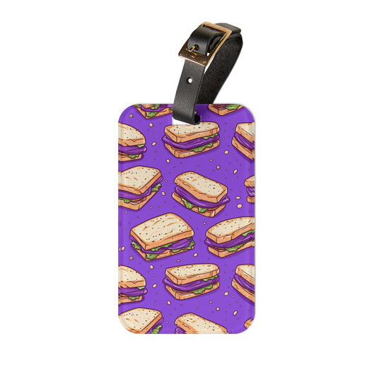 Yummy Sandwiches Purple Luggage Tag | Vibrant Food Lovers Travel Accessory | Funny Baggage ID for Delicious Fun Sammies | Foodie Gift