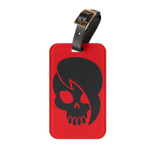 Skull With Emo Hair Luggage Tag | Red Gothic Style Travel Accessory | Emo Statement Baggage ID | Spooky and Stylish Gift for Emo Lovers
