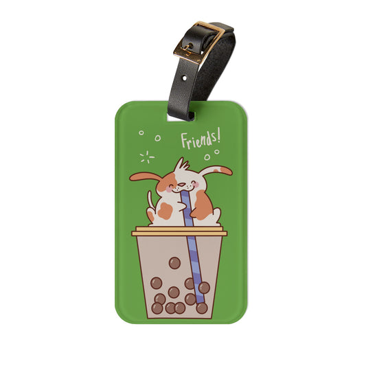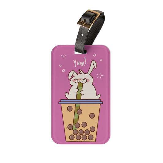 Cute Kawaii Bunny Drinking Boba Luggage Tag - Adorable Rabbit Travel Accessory - Perfect Baggage ID for Bunny Lovers Kawaii Animals Gift