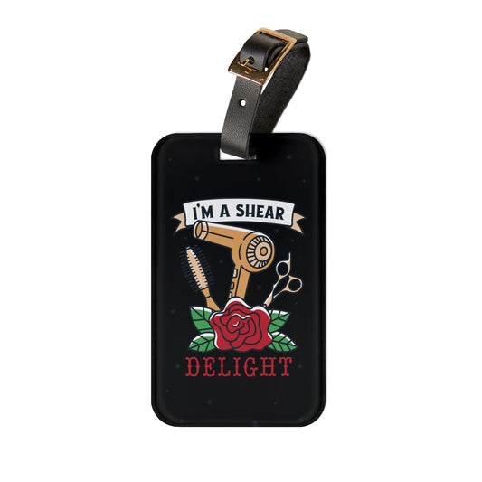 Im a Shear Delight Luggage Tag - Barber and Hairdresser Job Quotes - Perfect Travel Accessory for Stylists on the Go Barber Accessory