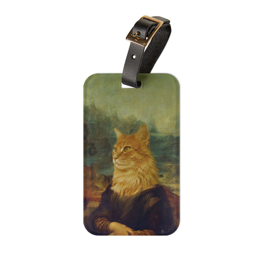 Funny Mona Lisa Style Cat Head Luggage Tag - Cat Lisa Painting Joke Baggage ID - Classic Art Humor for Cat Lovers Classic Art Humor