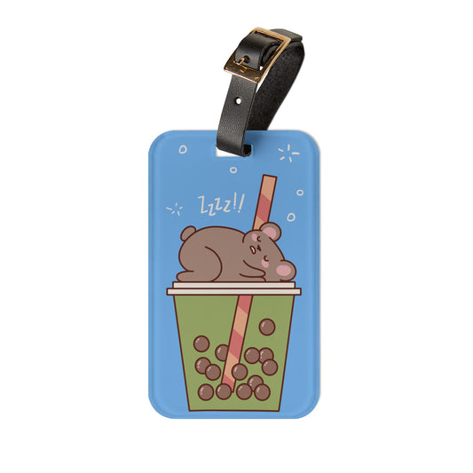 Cute Kawaii Sleeping Bear Drinking Boba Luggage Tag - Adorable Bear Travel Accessory Perfect Baggage ID for Bear Lovers Kawaii Animals Gift