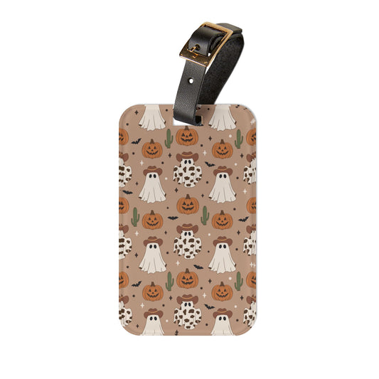 Cute Spooky Cowboy Ghost Luggage Tag - Fall Western Halloween Theme - Perfect Baggage ID for Fun Autumn Adventures