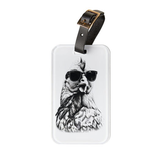 Classic Chicken with Sunglasses Luggage Tag - Black and White Drawn Style - Perfect Travel Accessory for Chicken Lovers & Funny Gift