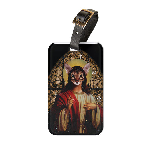 Funny Cat Jesus Mosaic Luggage Tag - Hilarious Travel Accessory for Cat Lovers - Perfect Baggage ID for Lighthearted Adventures