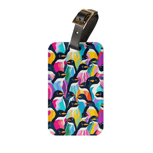 Abstract Neon Penguins Luggage Tag - Colorful Accessory for Penguin Lovers - Perfect Gift and Baggage ID for Fun-Filled Adventures