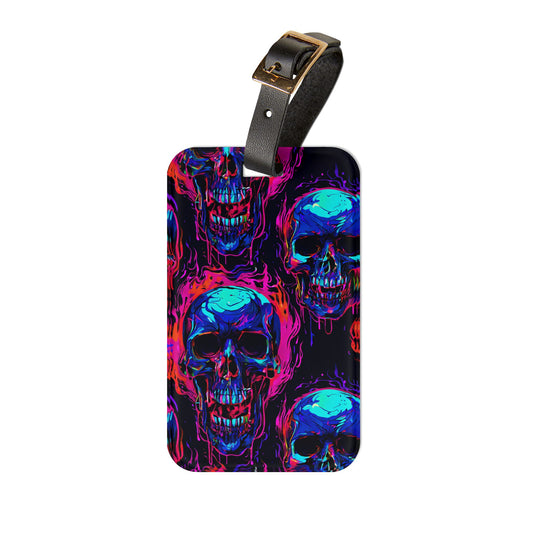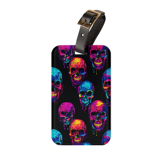 Trippy Neon Melting Skulls Luggage Tag Eye-Catching Neon Skull Art Accessory for Bold Travelers Perfect Baggage ID for Psychedelic Adventure