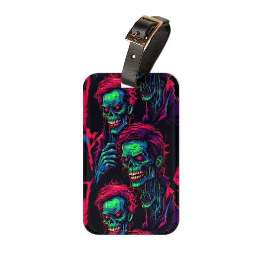 Neon Zombie Attack Luggage Tag - Trippy Zombie Baggage ID for Zombie Lovers - Perfect Gift for Eerie Adventures Zombie GIft