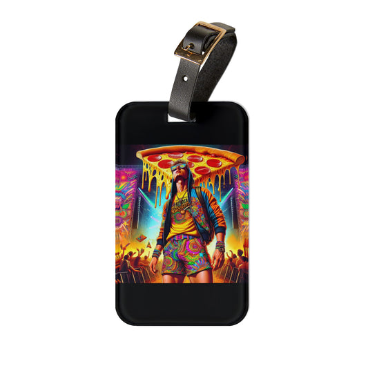 Raver Tripping at Festival Pizza Luggage Tag - Unique Travel Accessory for EDM Lovers - Perfect Baggage ID for Trippy Festival Adventures