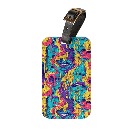 Colorful Melting Face Luggage Tag - Unique Travel Accessory for Ravers & Festival Goers - Perfect Baggage ID for Trippy Adventures