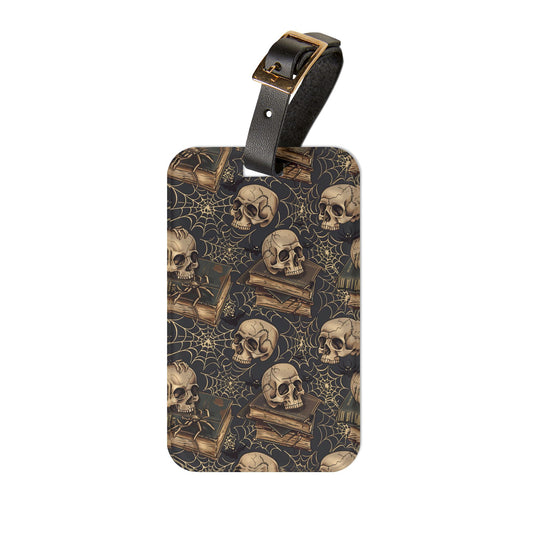 Gothic Skull Books Witchcraft Luggage Tag Unique Travel Accessory for Book Lovers & Witches Perfect Baggage ID for Dark Themed Adventures