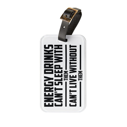 Energy Drinks Cant Sleep With Them Luggage Tag | Funny Drink Humor Baggage ID Blue Collar Style Travel Accessory Hilarious Quotes Travelers