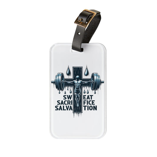 Sweat Sacrifice Salvation Jesus Cross Luggage Tag | Faith-Based Fitness Baggage ID Christian Gym Travel Accessory Inspirational Workout Gift