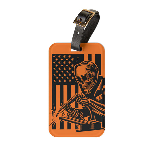Welder Skeleton American Flag Luggage Tag | Hi-Viz Safety Baggage ID | Blue Collar Travel Accessory | Welding Gift Proud American Welders