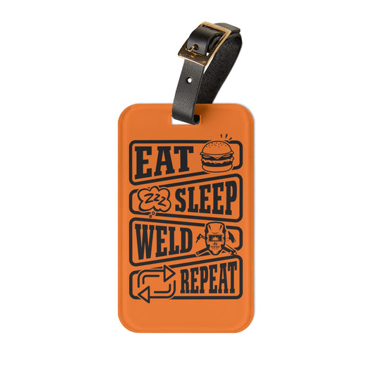 Eat Sleep Weld Repeat Luggage Tag | Funny Welding Jokes Baggage ID | Blue Collar Hi-Viz Travel Accessory | Sarcastic Gift for Welders