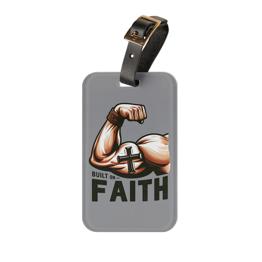 Built on Faith Jesus Luggage Tag | Christian Gym Baggage ID | Faith-Based Fitness Travel Accessory | Inspirational Workout Motivation Gift