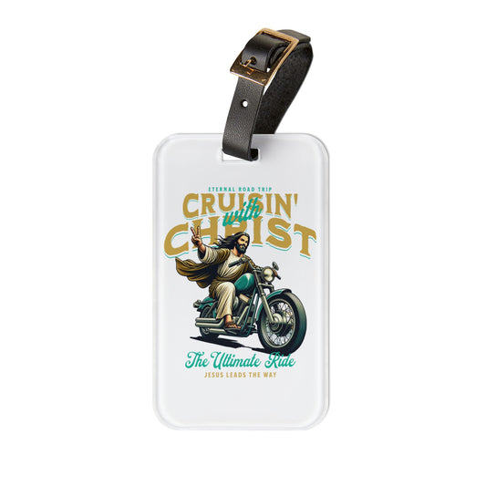 Cruisin With Christ Luggage Tag | Jesus on Motorcycle Baggage ID | Faith-Based Christian Travel Accessory Biker Style Gift Jesus Lover Gift