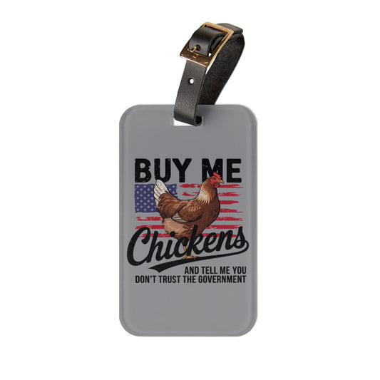 Buy Me Chickens Luggage Tag | Funny Chicken Conspiracy Baggage ID | Homesteader Jokes Travel Accessory | Perfect Gift for Chicken Lovers