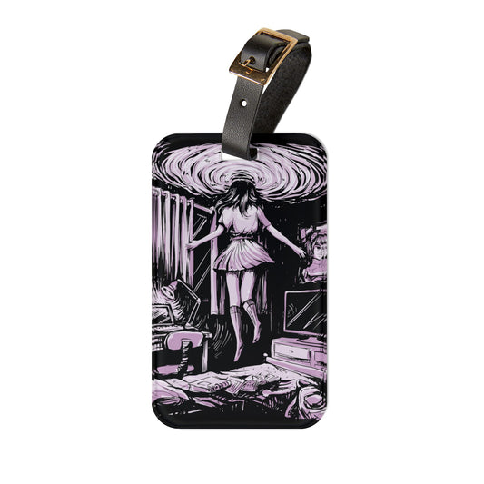 Floating Girl Entering Portal Luggage Tag | Trippy Streetwear Baggage ID | Dark Aesthetic Modern Art Travel Accessory | Mind-Melting Design