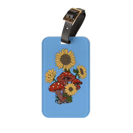 Cute Trippy Mushroom Sunflower Luggage Tag | Adorable Hippie Baggage ID | Boho Festival Travel Accessory for Mushroom Lovers Flowers Shroomy