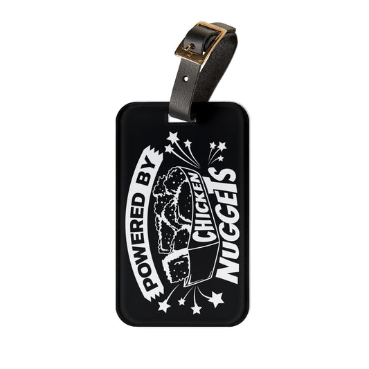 Powered by Chicken Nuggets Luggage Tag | Funny Food Lover Baggage ID Chicken Tendies Joke Travel Accessory Perfect Gift Foodies Nugget Fans