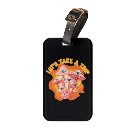 Lets Take a Trip Mushroom Eyes Luggage Tag | Trippy Psychedelic Baggage ID | Colorful Festival Travel Accessory for Rave & Hippie Lovers