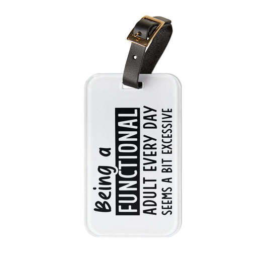 Being a Functional Adult Is Excessive Luggage Tag White | Funny Adulting Quotes Baggage ID Sarcastic Humor Travel Accessory Hilarious Gift