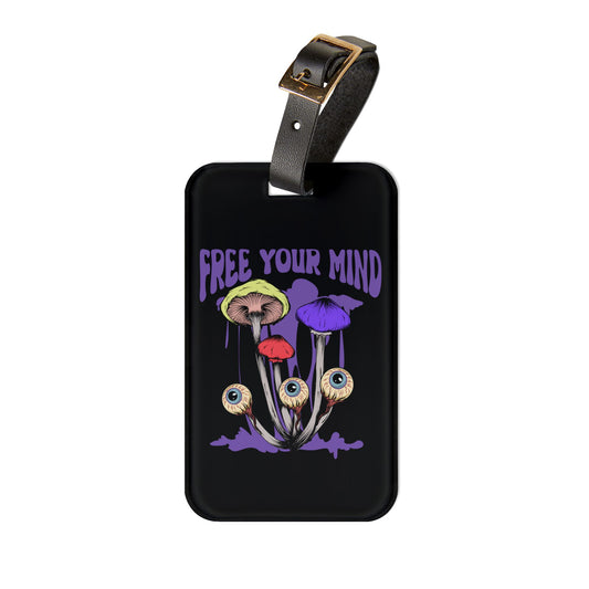Free Your Mind Mushroom Luggage Tag Trippy Psychedelic Baggage ID Vibrant Festival Travel Accessory Rave Hippie Lovers Colorful Mushroom Art