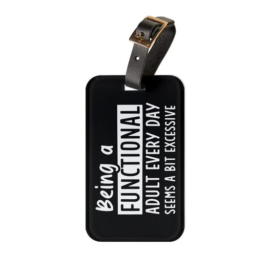 Being a Functional Adult Is Excessive Luggage Tag | Funny Adulting Quotes Baggage ID Sarcastic Humor Travel Accessory Hilarious Gift Adults