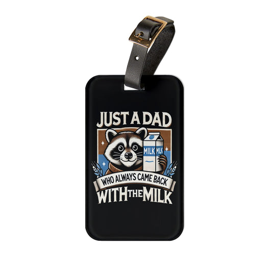 Raccoon Dad with Milk Luggage Tag | Funny Raccoon Baggage ID | Hilarious Dad Humor Travel Accessory | Perfect Meme Gift for Raccoon Lovers