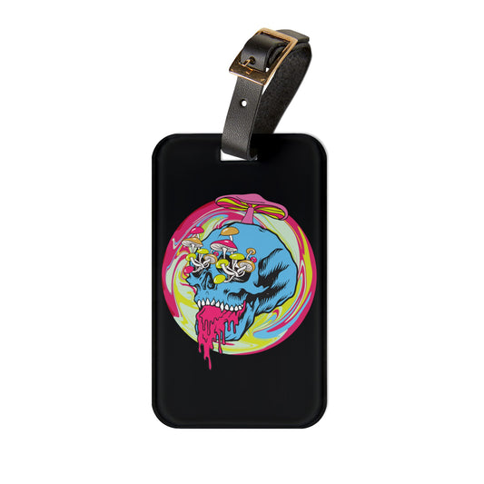 Trippy Skull Mushroom Luggage Tag | Psychedelic Streetwear Baggage ID | Vibrant Shroom Art Travel Accessory Festival Rave Lovers Urban Style