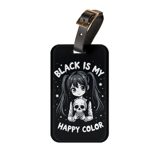 Cute Goth Black Is My Happy Color Luggage Tag | Gothic Style Baggage ID | Dark Aesthetic Travel Accessory | Witchy Vibes Gift Cute Emo GIrl